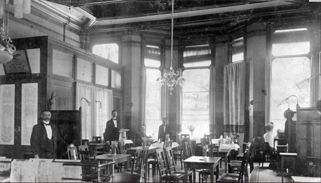“De Vereeniging” kende ook toen al een café- en restauratievoorziening voor de leden. In 1906 werd het voor de inkomsten noodzakelijk de Grote Zaal te exploiteren en kwam er een café-restaurant, maar dan wel met een aparte entree naar de straatzijde. Het huis bood ook onderdak aan diverse clubs, al dan niet verbonden aan “De Vereeniging”. Ook dit weer ten behoeve van de exploitatie. Populair was bijvoorbeeld de kegelbaan die in de jaren 1890 in het Achterhuis werd aangelegd. Deze baan werd gebruikt door de eigen kegelclub Columbumbus, maar ook door andere kegelclubs uit de stad.